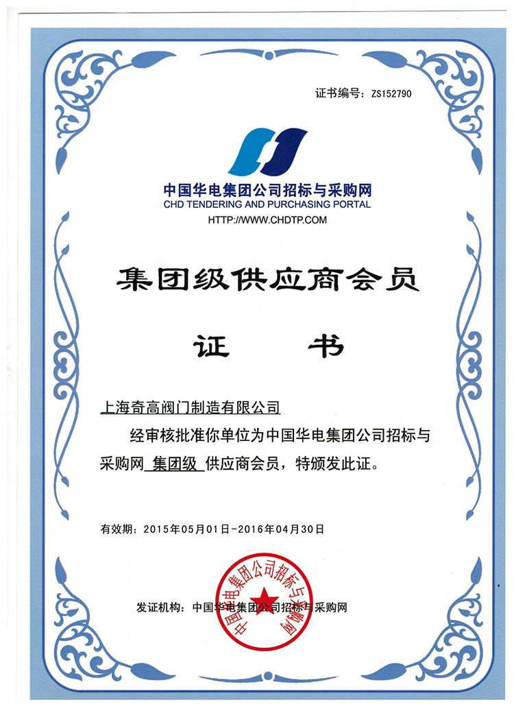 2019-12-18 關(guān)注次數(shù):2015年5月1日,上海奇高閥門(mén)制造有限公司(http://m.0137w.cn)經(jīng)過(guò)中國(guó)華電集團(tuán)公司招標(biāo)與采購(gòu)網(wǎng)的嚴(yán)謹(jǐn)?shù)膶徍?,以過(guò)硬的資質(zhì)力量獲得了中國(guó)華電集團(tuán)公司招標(biāo)與采購(gòu)網(wǎng)的集團(tuán)級(jí)供應(yīng)商會(huì)員證書(shū)。特此祝賀。經(jīng)過(guò)中國(guó)華電集團(tuán)公司招標(biāo)與采購(gòu)網(wǎng)的嚴(yán)謹(jǐn)?shù)膶徍耍赃^(guò)硬的資質(zhì)力量獲得了中國(guó)華電集團(tuán)公司招標(biāo)與采購(gòu)網(wǎng)的集團(tuán)級(jí)供應(yīng)商會(huì)員證書(shū)。特此祝賀。經(jīng)過(guò)中國(guó)華電集團(tuán)公司招標(biāo)與采購(gòu)網(wǎng)的嚴(yán)謹(jǐn)?shù)膶徍?,以過(guò)硬的資質(zhì)力量獲得了中國(guó)華電集團(tuán)公司招標(biāo)與采購(gòu)網(wǎng)的集團(tuán)級(jí)供應(yīng)商會(huì)員證書(shū)。特此祝賀。