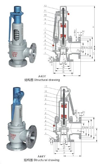 A48Y full-open safety valve with wrench spring is suitable for steam, air and other media equipment and pipelines whose working temperature is less than 350'.