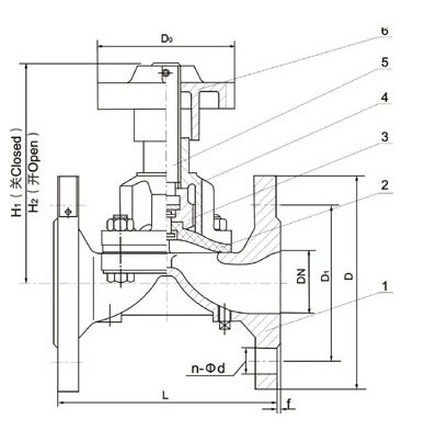 Parts list: 1. valve 2. diaphragm 3. disc 4. stem 5. valve 6, handwheel.