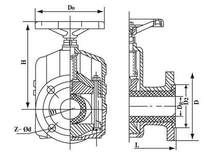 When the handwheel is rotated, the large and small stem simultaneously drives the upper and lower gate plates, compresses the sleeve, closes, reverses and opens, thus, the gate plate completes the valve opening and closing work up and down between the guide posts. In addition, due to the rubber sleeve bearing force, so when switching, the operator rotating the handwheel as long as they feel a moderate amount of conflict, have reached the opening and closing pole, do not try or more people to assist, prohibit the use of other tools to open and close.