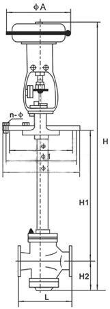 The signal pressure from the regulator is fed into the air chamber of the pneumatic membrane actuator to generate thrust. The valve core is driven by connecting rods. The change of the valve core position makes the valve flow cross-sectional area change and realizes the adjustment of the medium flow rate.