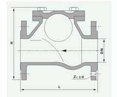 HQ41X ball-type ball check valve uses rubber wrapped ball as disc. Under the action of medium, it can roll up and down on the integral slide of the valve body, thereby opening or closing the valve. The noise elimination type closes, does not produce the water hammer, the sealing performance is good. The valve body adopts a full flow passage, with large flow rate and small resistance, and the head loss is smaller than 50% of the swing type. Horizontal or vertical installation can be used for cold water, hot water, industrial and domestic water pipe network system, more suitable for the use of submersible sewage pump, medium temperature is 0 ~ 80%.